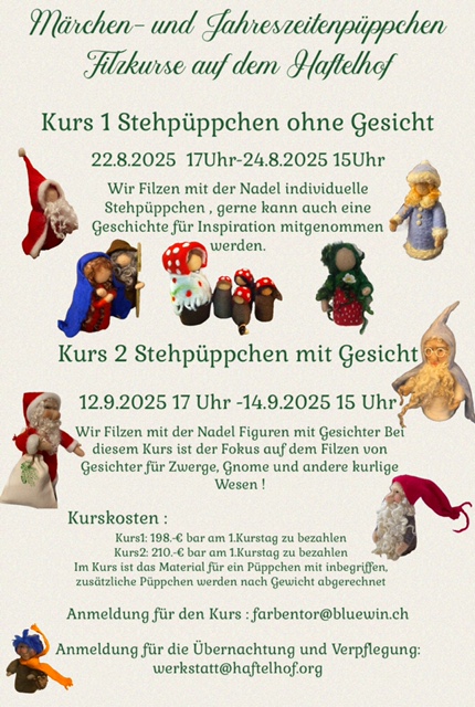 09A | 12.09.2025 | Märchen- und Jahreszeitenpüppchen Filzkurs auf dem Haftelhof |