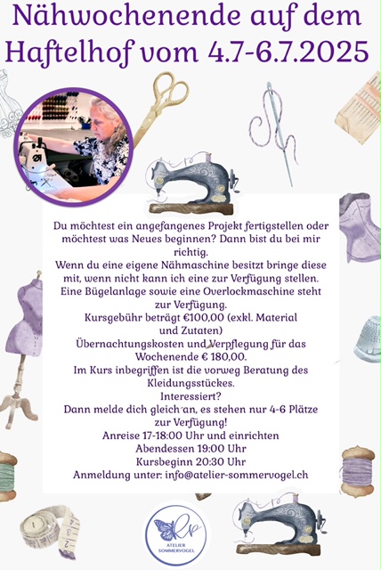 07A | 04.07.2025 - 06.07.2025 | Nähwochenende auf dem Haftelhof | ![]() |
